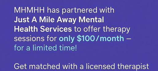 Feeling off your flow? MHMHH has partnered with Just A Mile Away Mental Health Services to offer therapy sessions for only $100/month — for a limited time!